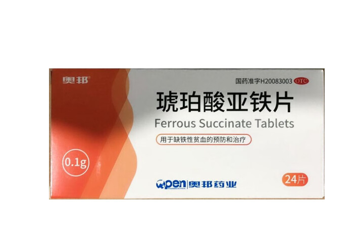 奥邦 琥珀酸亚铁片 0.1g*24片/盒 缺铁性贫血的预防