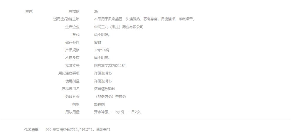 999三九感冒清热颗粒12g*14袋风寒感冒头痛发热鼻