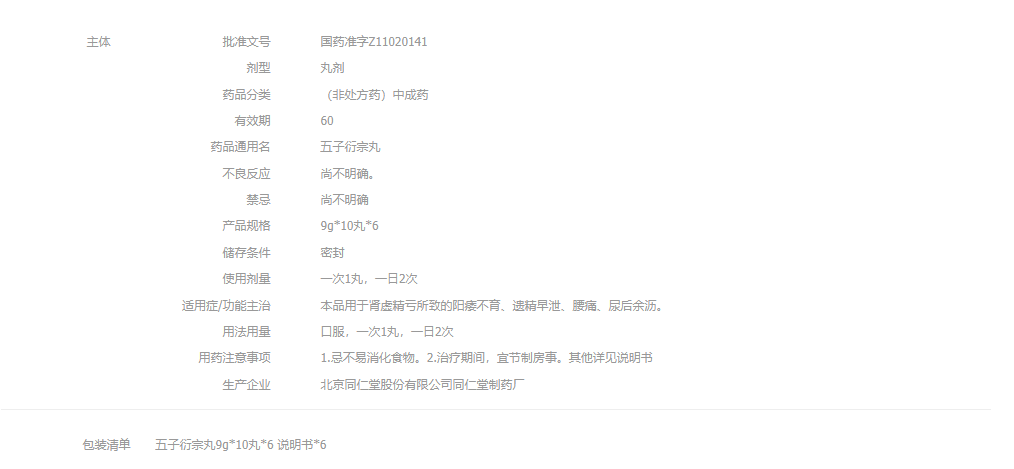 北京同仁堂 TRT 五子衍宗丸90g(9g*10丸)补肾益精
